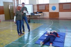 Викладачі ВНКЗ ЛОР «Львівський інститут медсестринства та лабораторної медицини ім. Андрея Крупинського»: кандидат наук з державного управління Неділько Р. та викладач ІІ категорії Гончаров М. Провели навчально – практичний тренінг «Навчання першої домедичної допомоги».