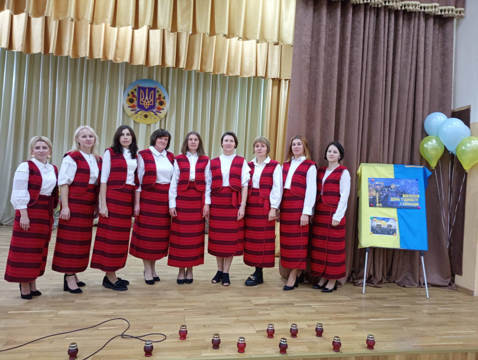 Учні 3, 6 та 8 класів старанно декламували вірші. Щиро та душевно виконували інсценівки «Матері та сина» вихованці 5, 6, 8, 10 класів. Запалювали свічки для Героїв найменші школярі нашого закладу. Танець дівчат 10 класу «Тому, що я Україна» передав важливість доленосних подій в Україні. Чуттєво учні та вчителі виконували пісенний репертуар свята. На завершення дівчата-ангелики роздали гостям заходу пам’ятні синьо-жовті обереги «Все буде Україна!». З привітальним словом звернувся до усіх присутніх гість свята фахівець з освітньої політики, правового та кадрового забезпечення відділу освіти Яворівської міської ради Богдан Володимирович ФЛИС.