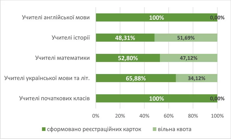 Станом на 08.00 6 січня 2025 року 1315 учителів початкових класів, 414 учителів української мови та літератури, 426 учителів математики, 336 учителів історії та громадянських дисциплін, а також 492 вчителі іноземної мови (англійської) уже сформували реєстраційні картки-заяви.