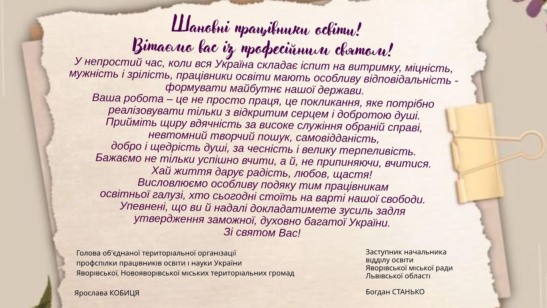 Вітаємо вас із професійним святом! У непростий час, коли вся